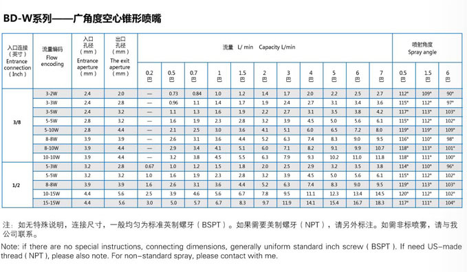 Application consulting: 139 1663 9930 Design features of hollow nozzle BD series: The spray particles are fine and uniform, which can produce a hollow conical spray with uniform atomization. The BD series nozzles have a simple structure and